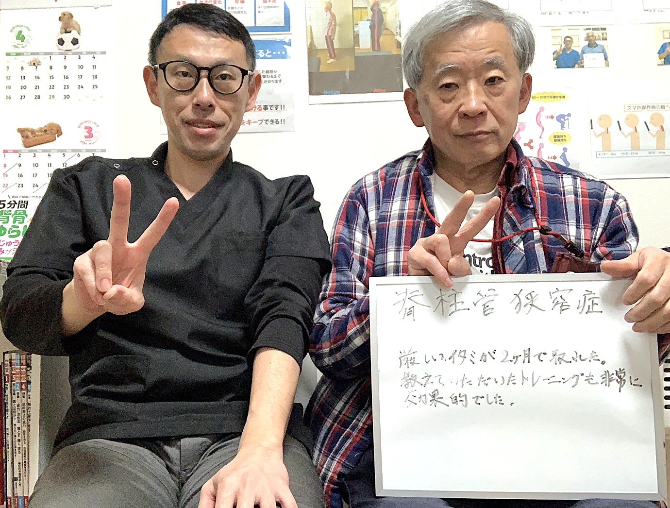 お客様から、厳しい痛みが2か月で取れた。教えていただいたトレーニングも非常に効果的でした。とお声もいただきました。